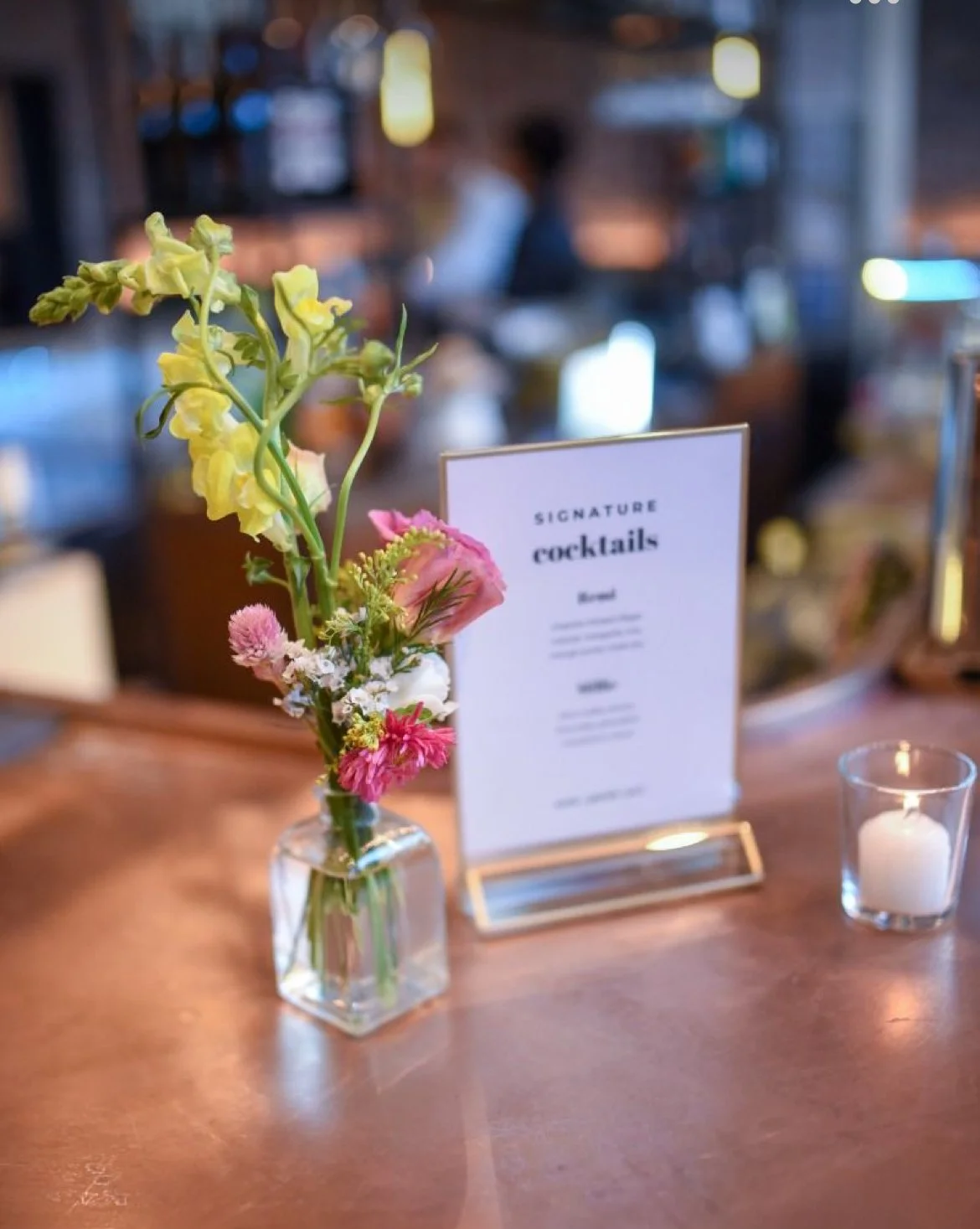 20 bud vases, each with 1–3 assorted seasonal flowers, delivered fresh on Monday and/or Thursday. Arrangements are styled to reflect the seasons and holidays, giving your tables or counters a unique touch each week. Flowers typically last 4+ days (depending on temperature). Includes a vase switch service — I deliver clean vases and collect the previous week’s. Perfect for restaurants, cafés, or boutique spaces looking to stand out with fresh floral charm.